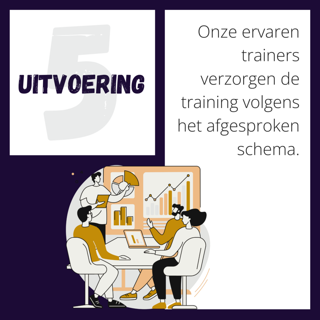 Trainingen kunnen worden aangepast aan jouw schema en voorkeuren, met mogelijkheden voor on-site, online of hybride sessies, zodat je minimale verstoring van je dagelijkse werkzaamheden ervaart.