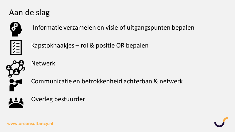 Kortom:- Ga in gesprek en deel de onzekerheid. De OR heeft zelf ook veel informatie en zicht op ontwikkelingen binnen en buiten de organisatie. Zoals: